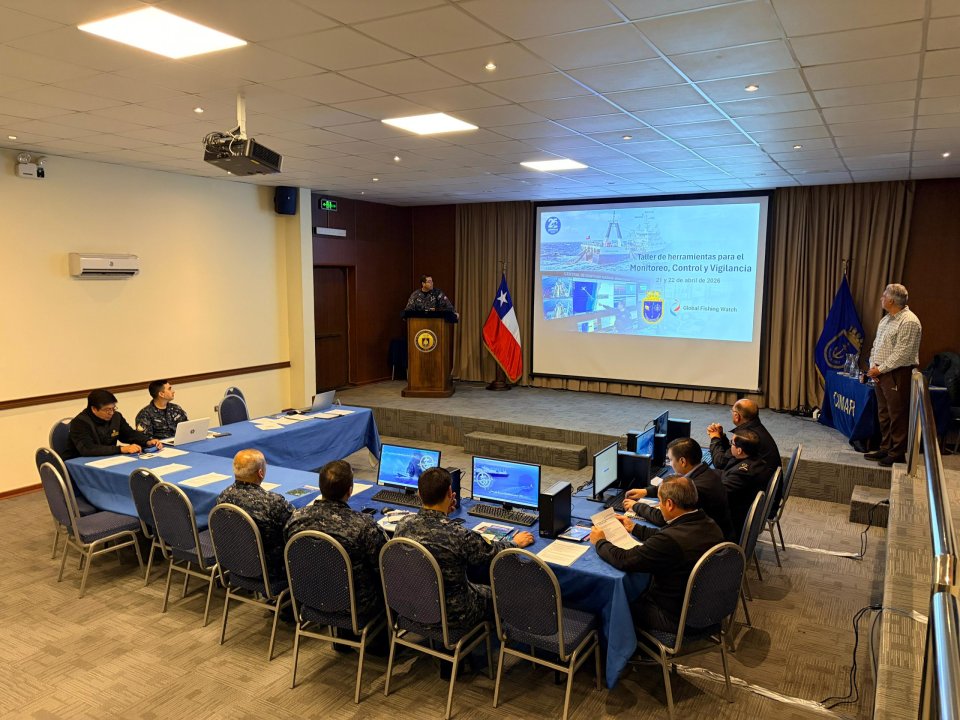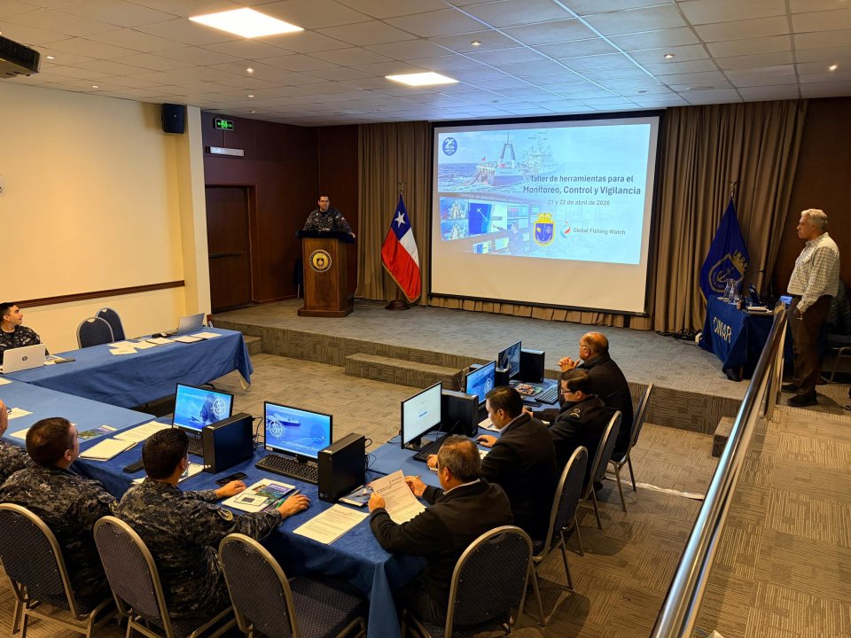 Con el objetivo de reforzar las herramientas tecnológicas para el control y vigilancia de los recursos marinos, el Departamento de Pesca de la Dirección de Intereses Marítimos y Medio Ambiente Acuático (DIRINMAR) organizó un taller de capacitación los días 21 y 22 de abril, enfocado en el uso de la plataforma Global Fishing Watch (GFW).