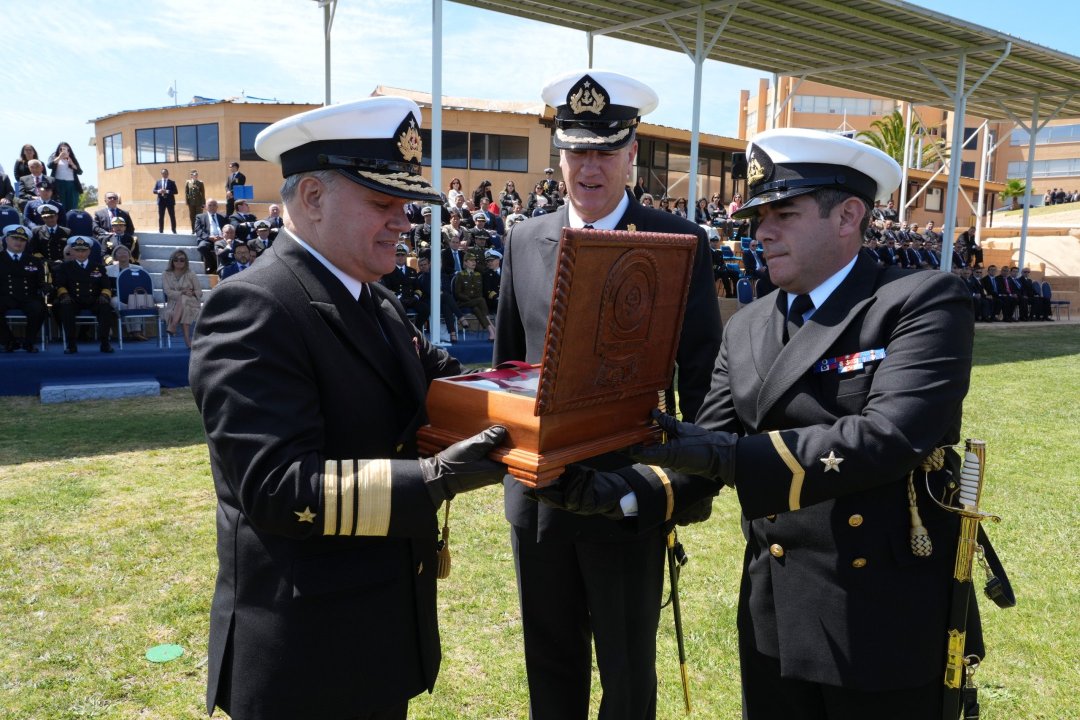 También, agradeció al Comandante en Jefe de la Armada (CJA) Almirante Fernando Cabrera, manifestándole su profunda gratitud por la confianza que depositó en él, por su permanente cercanía y por ejercer un liderazgo ejemplar, sustentado en la rectitud y la consecuencia.