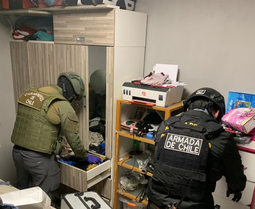 En el procedimiento, llevado a cabo este miércoles 1 de octubre por personal de Policía Marítima y Carabineros de Chile, se materializaron allanamientos simultáneos en dos domicilios en el sector centro de la ciudad, consiguiendo la detención de dos ciudadanos chilenos e incautando un arma de fuego, munición, dinero en efectivo, droga y elementos para su dosificación y posterior comercialización.