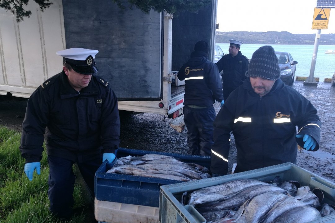 Un trabajo conjunto entre personal de Policía Marítima de la Capitanía de Puerto de Quemchi, el Departamento de Inteligencia Marítima (DIM) dependiente la Gobernación Marítima de Castro y Sernapesca, dejó como saldo más de una tonelada del recurso conocido como merluza del sur incautada en un operativo realizado en horas de la madrugada del pasado sábado 19 de agosto.