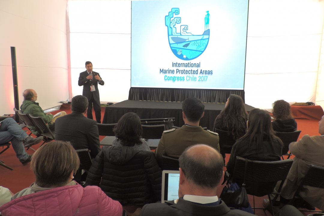 Un importante reconocimiento, al aporte que la Armada de Chile efectúa a la Investigación Científica, realizó el destacado doctor en Biología, Ecología y Conservación Marina, Carlos Gaymer, en el marco de su participación en el foro titulado “Fiscalización, Vigilancia y Monitoreo de las Áreas Marinas Protegidas” con el tema “Apoyo Armada a la Investigación Científica en Áreas Marinas Protegidas” efectuado en el pabellón Chile en el marco de la cuarta jornada del IMPAC4.