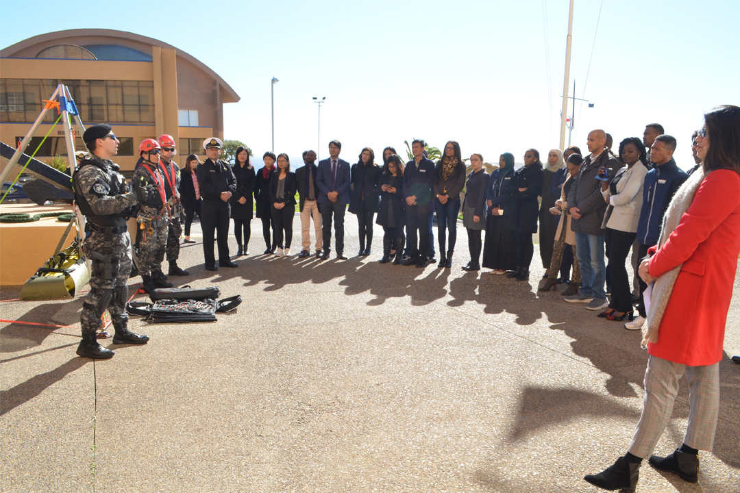 La delegación de la Universidad Marítima Mundial fue recibida por el Vicealmirante Ignacio Mardones en compañía del Director de Asuntos Internacionales de Directemar CN LT Zvonimir Yuras. Tras los saludos protocolares, los alumnos visitaron las dependencias de las Direcciones Técnicas Marítimas, del complejo Faro Punta Ángeles donde fueron recibidos por el Subdirector de DIRSOMAR, CN LT César Cruzat Zuñiga y el Jefe del MRCC Chile, CN LT Cristian Gálvez Vergara, para dar inicio a las exposiciones referentes al trabajo que lleva a cabo la Autoridad Marítima Nacional.
