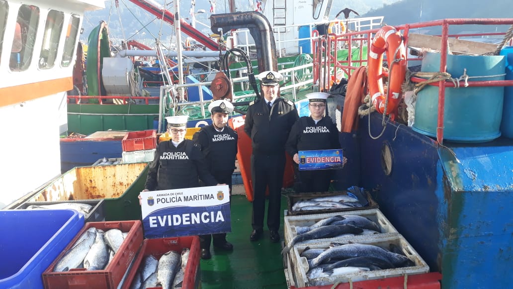 Más de 15 toneladas de salmones fueron decomisadas en un patrullaje preventivo realizado por personal de la Capitanía de Puerto de Puerto Montt en conjunto con el Departamento de Inteligencia de la Gobernación Marítima, en las cercanías de la Caleta Anahuac.