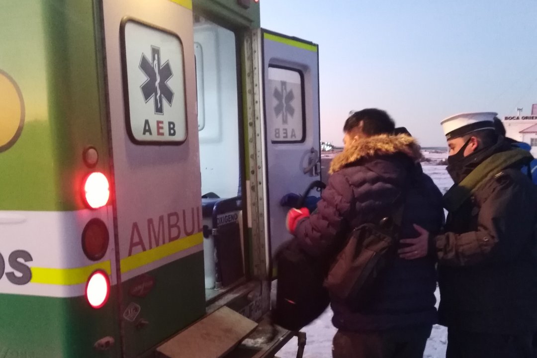 La evacuación fue apoyada vía marítima por intermedio de Lancha de Embarco de Práctico “Kaitek” perteneciente a la agencia marítima “Ian Taylor”, produciéndose el desembarco del tripulante a las 16:20 hrs. siendo evaluado por personal paramédico y posteriormente ser trasladado a la ciudad de Punta Arenas, para reciba atención medica en la clínica “IMED” Punta Arenas.