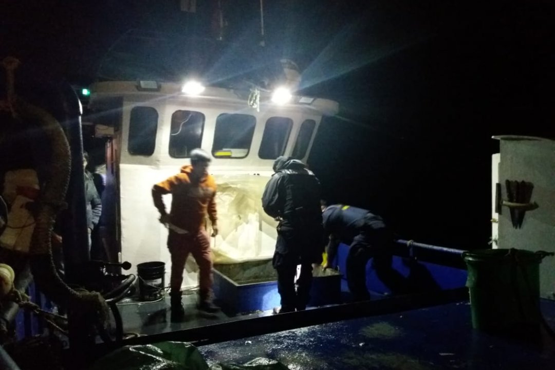 Policía Marítima de la Capitanía de Puerto de Quemchi logró incautar 150 kilos de merluza austral, durante un patrullaje de fiscalización pesquera en Caleta Tenaún, Chiloé.