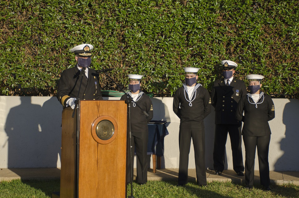 En el Patio de Honor del Servicio Hidrográfico y Oceanográfico de la Armada (SHOA), se efectuó la Ceremonia Conmemorativa del 141° Aniversario del Combate Naval de Iquique y Día de las Glorias Navales, la cual estuvo presidida por el Director, Contraalmirante Patricio Carrasco H.