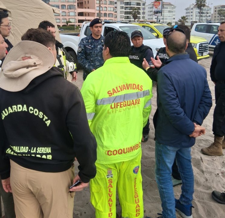 La Gobernación Marítima de Coquimbo dispuso el zarpe de una Lancha Patrullera Marítima (LPM) junto a su dotación, además de 2 patrullas terrestres, motos acuáticas y un bote de goma.