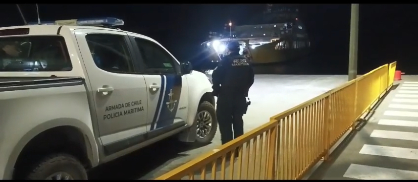 La información fue recibida por la Capitanía de Puerto de Punta Arenas, activando un operativo de Policía Marítima constituyéndose en el lugar para realizar la adopción del procedimiento respectivo, en dónde cumpliendo los protocolos establecidos se efectúo el levantamiento de cámaras de la nave, identificando a un individuo en el registro fílmico realizando el ilícito, procediendo a informar al Fiscal de Turno, el cual indicó la revisión de sus vestimentas y equipaje por orden del Juez de Garantía.
