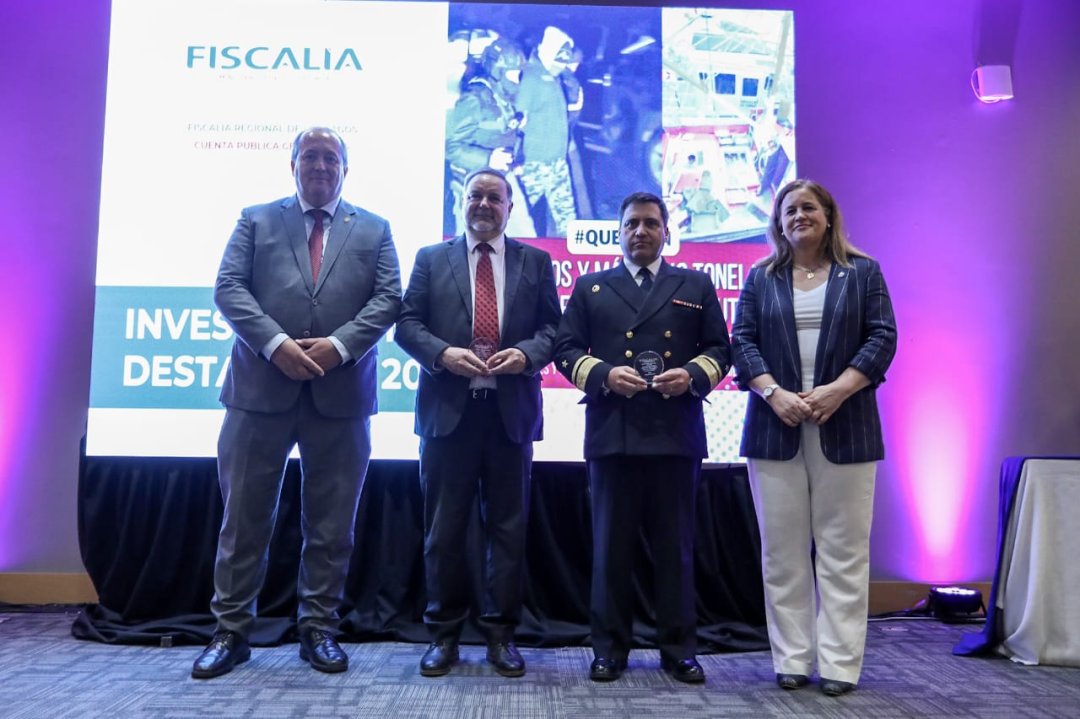 Durante el desarrollo de la ceremonia, la Fiscal Regional de Los Lagos hizo entrega de reconocimientos a fiscales y oficiales de caso por investigaciones destacadas a nivel regional, entre ellos la Sección de Investigaciones Policiales Marítimas Sur del Departamento de Inteligencia e Investigaciones Policiales Marítimas (DIPOLMAR), por el desarrollo de la operación “Marejada” que culminó que la desarticulación de una agrupación delictual dedicada al robo de salmones desde centros de cultivo en las regiones de Aysén y Los Lagos.