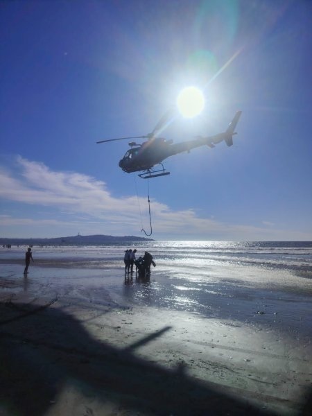 “Al acudir al sector, nos encontramos con personas en peligro de inmersión siendo apoyadas por el bote de rescate de la Municipalidad de La Serena. Posterior a este, logramos extraer a tres personas de forma segura al sector de la playa, siendo apoyados también por la Policía Marítima en la parte terrestre”, explicó el piloto de la aeronave, Teniente 2° Sebastián Candia.