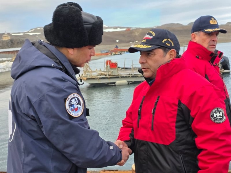 El lunes 2 de febrero de 2026, en dependencias de la Gobernación Marítima de la Antártica Chilena y Capitanía de Puerto de Bahía Fildes, se recibió la visita protocolar de una delegación de la Marina de Guerra del Perú. La comitiva estuvo compuesta por el Comandante General de la Marina, Almirante Javier Bravo de Rueda Delgado; el Director General de Capitanías y Guardacostas, Vicealmirante Oscar Torrico Infantas; y el Director de Hidrografía y Navegación, Contralmirante Jorge Vizcarra Figueroa.